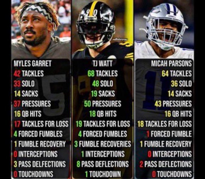 Parsons accused a writer for Barstool of stat-scouting after the writer said this was a “NFL Rig Job.” In addition to calling it a “horrible take,” he also brought attention to how frequently Garrett had to be double-teamed while still having an effect on the game.