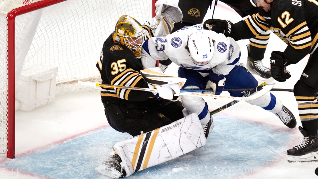 Goalie Linus Ullmark of the Boston Bruins was fined $5,000 by the NHL on Wednesday for high-sticking Michael Eyssimont, a forward with the Tampa Bay Lightning.